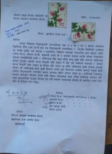 जिल्ला प्रशासनमा पीडितले हालेकाे निवेदनः
