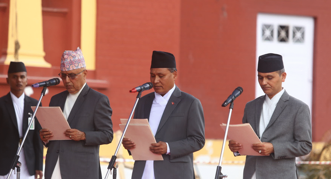 शपथ ग्रहण समारोहमा राष्ट्रपति रामचन्द्र पौडेल, उपराष्ट्रपति रामसहायप्रसाद यादव, राष्ट्रिय सभाका अध्यक्ष नारायणप्रसाद दाहाल लगायत उच्च पदस्थहरूको सहभागीता थियो।पूर्वप्रधानमन्त्री बाबुराम भट्टराई पनि शपथ ग्रहण समारोहमा सहभागी थिए।
